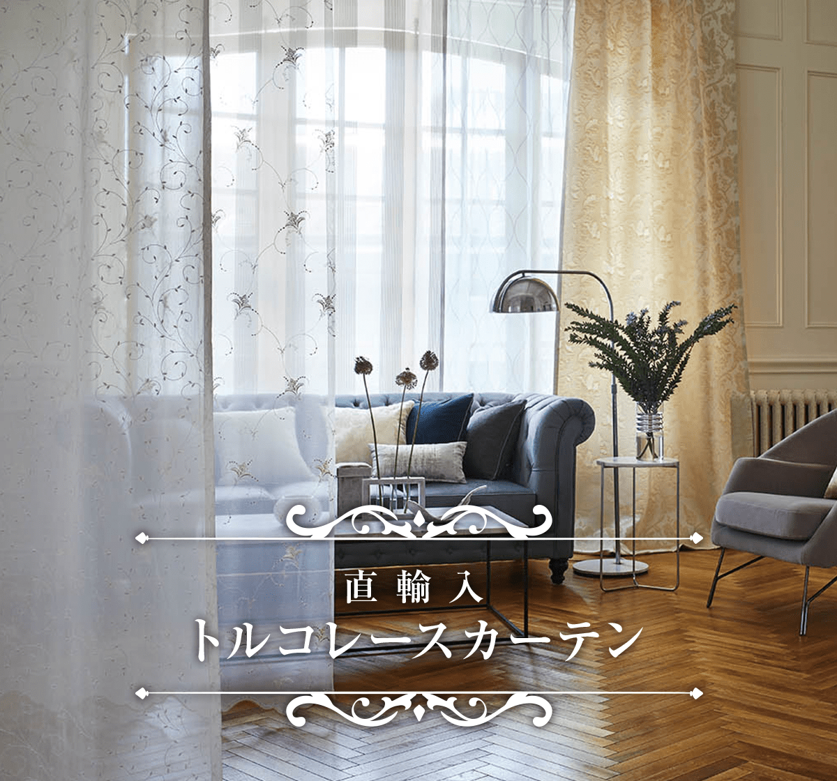 「レースで窓辺の印象を上品に変えたい」ならトルコ刺繍レース。立体感のある刺繍が光を受けて美しく映えます。レースだけでも主役になる存在感がありながら、ドレープと組み合わせても自然になじみます。