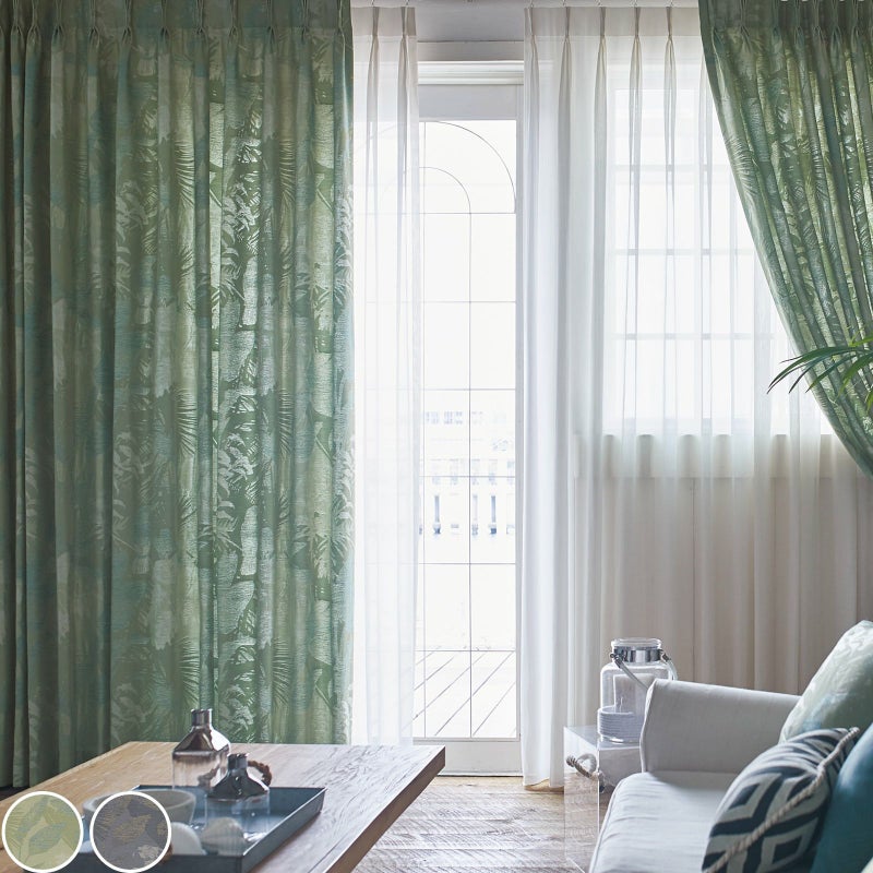 洗える 防炎 アジアン ボタニカル 高級 ドレープ カーテン 0000005225