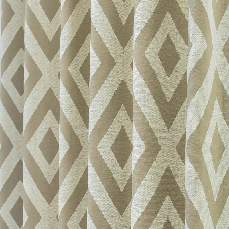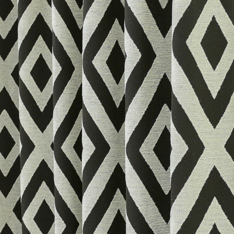 帯やきものに良く使われる吉祥文様「菱柄」を、エスニックな幾何柄と重ね合わせたデザインです。モールの質感と大胆な柄行きが個性的です。防炎性・保温性のあるカーテンでお部屋の寒さ対策&省エネ効果も期待できます。また、ウォッシャブルなのでお家でお洗濯が可能です。