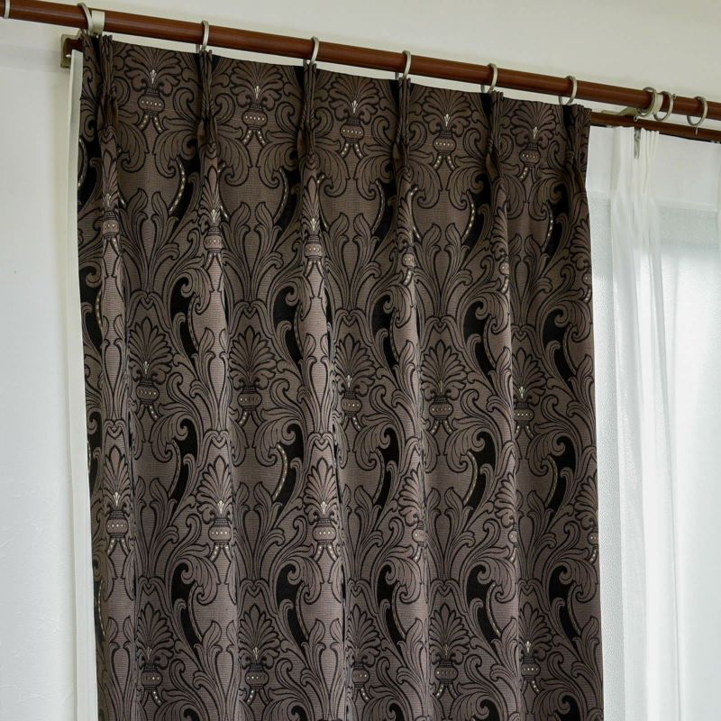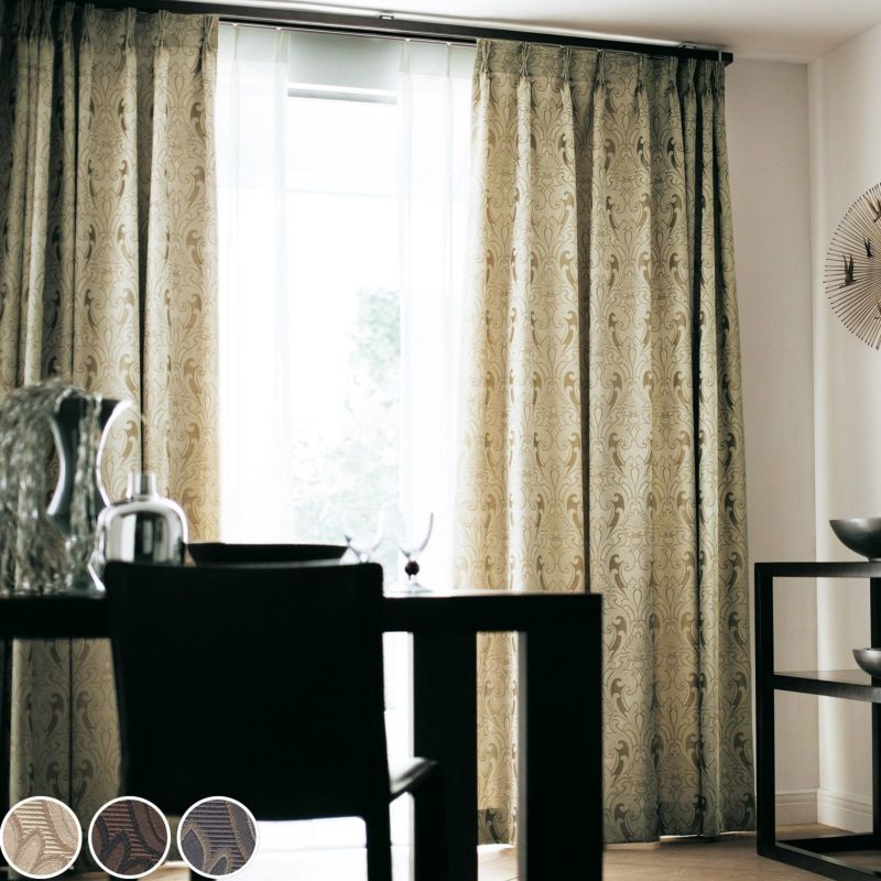 クラシカルなオーナメントを大胆に構成した高密度ジャガードのドレープです。防炎カーテンの設置が義務付けられているマンション等でも安心してお使いいただけます。また、ウォッシャブルなのでお家でお洗濯が可能です。