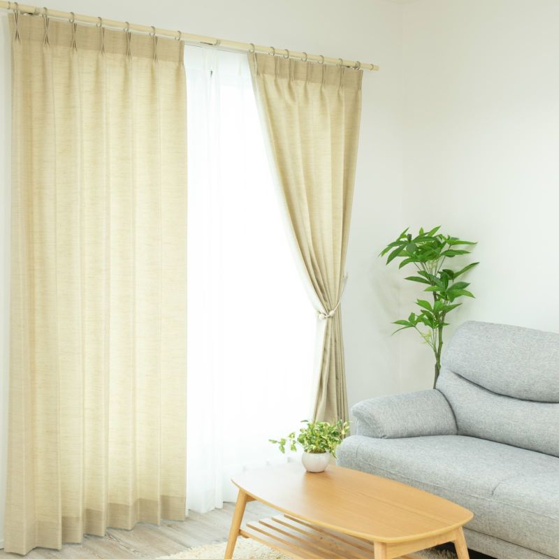 【お急ぎオーダー品】 上品な光沢感のあるシャンタン生地のドレープカーテンです。自然な風合いで、節のある繊維感がシンプルな生地のアクセントになっています。優しいニュアンスのカラーバリエーションで、エレガント・ナチュラル・モダンなどさまざまなスタイルにマッチします。ウォッシャブルなのでご家庭で手軽にお洗濯ができます。