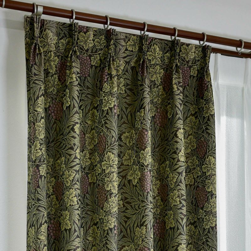 ウィリアム・モリスのデザインです。葡萄の立体感を糸を工夫して表現し、深みのある織物に仕上げられています。防炎性・保温性のあるカーテンでお部屋の寒さ対策&省エネ効果も期待できます。また、ウォッシャブルなのでお家でお洗濯が可能です。