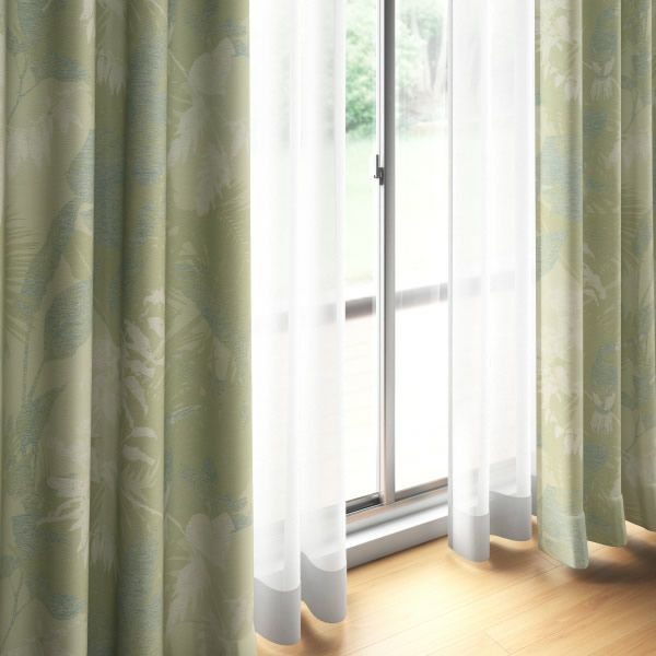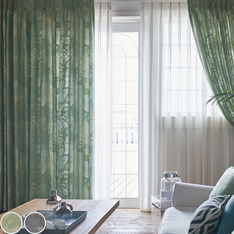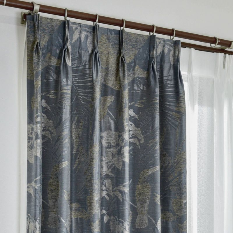 洗える 防炎 アジアン ボタニカル 高級 ドレープ カーテン 0000005225