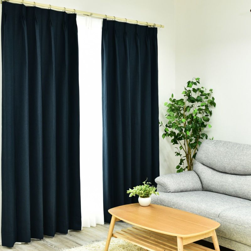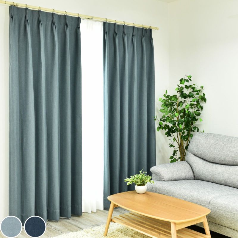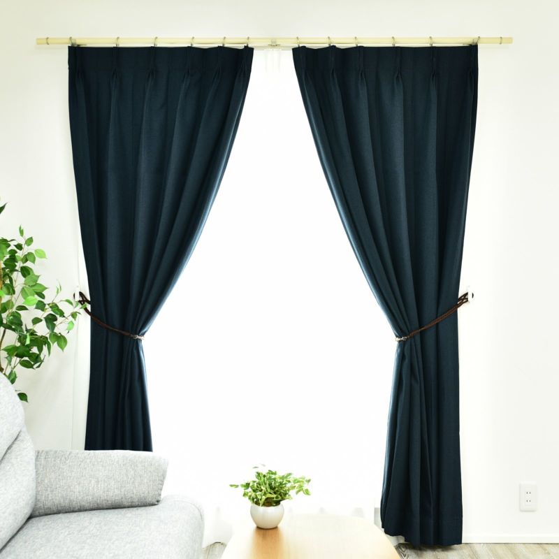 自然な風合いのある、デニムライクな無地の遮光2級カーテンです。程よい厚みで、柔らかな生地が落ち着いた空間を演出してくれます。遮光2級は人の表情がわかるぐらいの暗さのカーテンです。また、ウォッシャブルなのでお家でお洗濯が可能です。