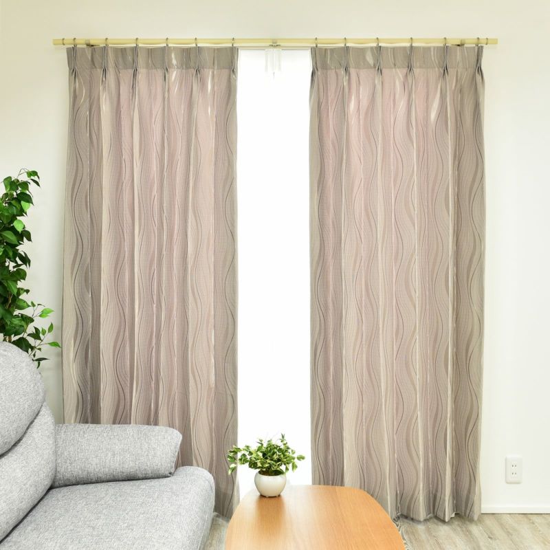 ※オプションでプリーツ加工を選択できる商品については、カーテンのウェーブを美しく保ち、生地の収まりを良くするため、プリーツ加工をおすすめしています。加工なしの場合、写真と異なる見え方や裾の広がりが生じることがあります。