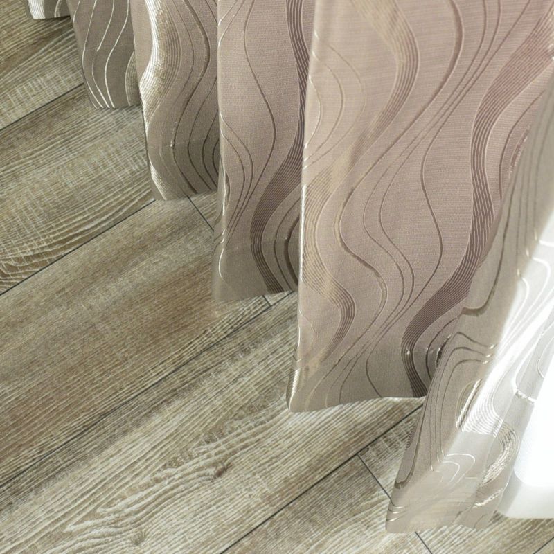 ダークな色合いに光沢のある曲線がシックでモダンな印象のドレープカーテンです。防炎性があるので、カーテンの使用が必要な建物でも安心してお使いいただけます。防炎カーテンは、火災の際に「燃えにくい」カーテンのことです。また、ウォッシャブルなのでお家でお洗濯が可能です。