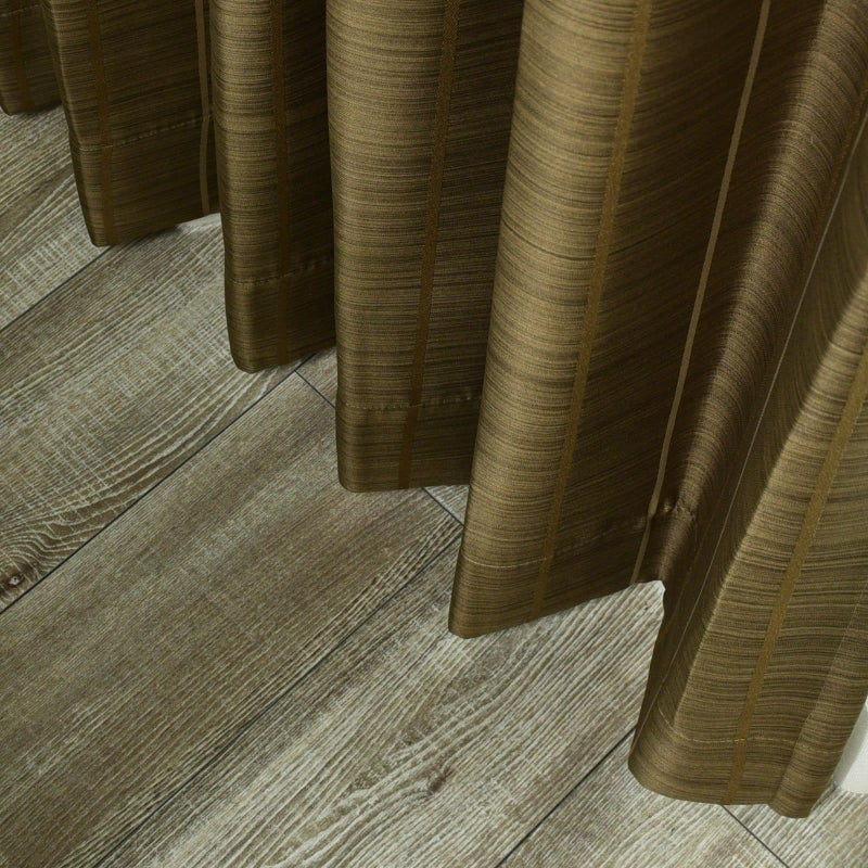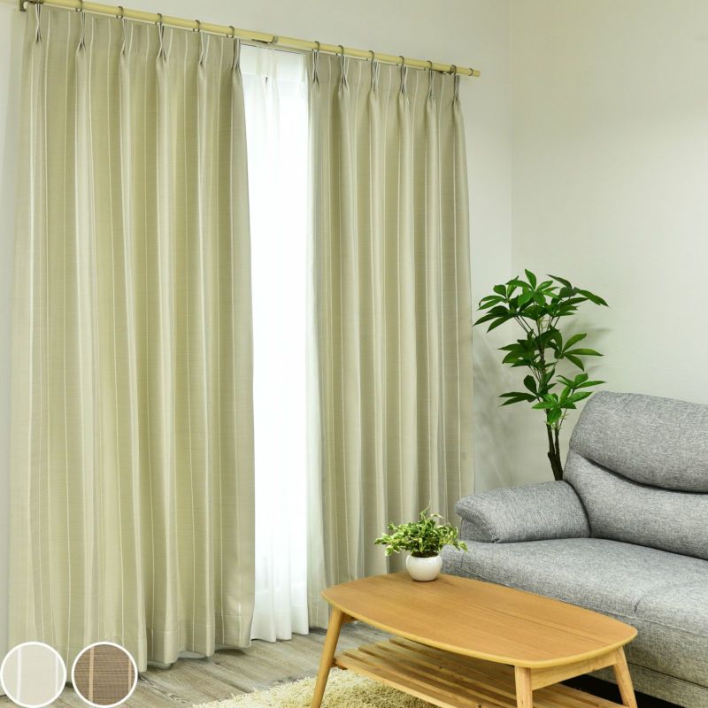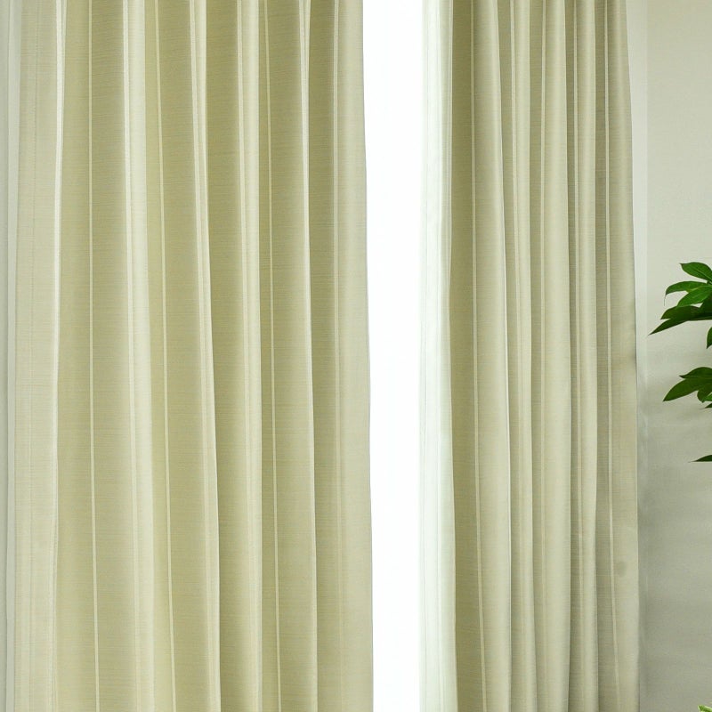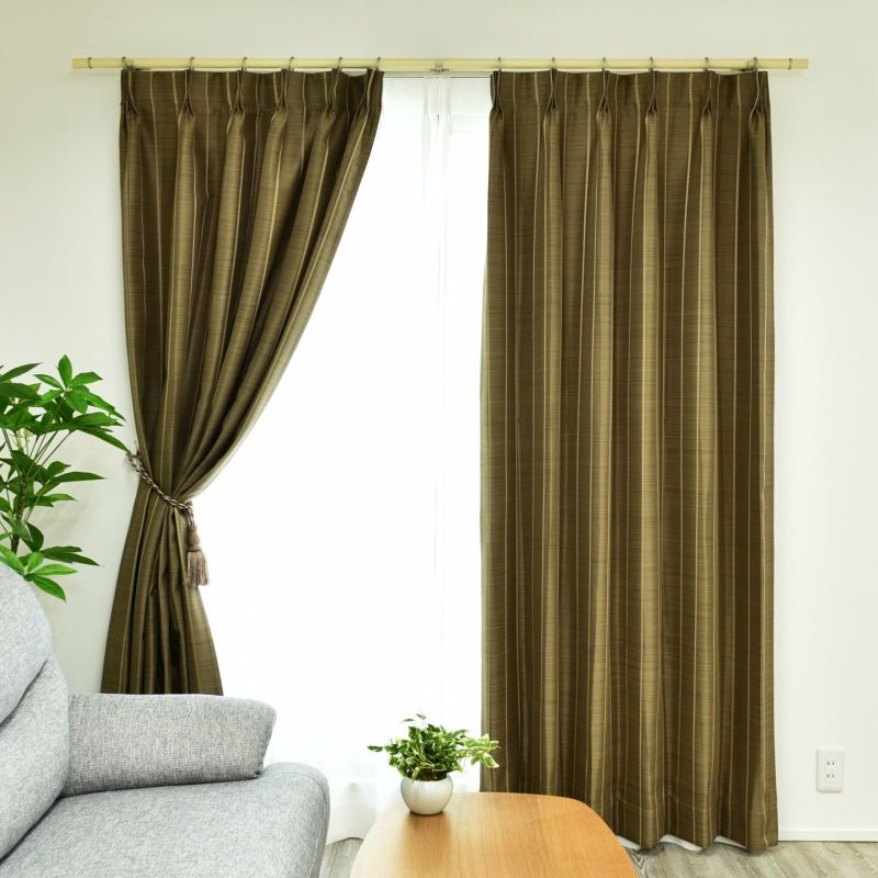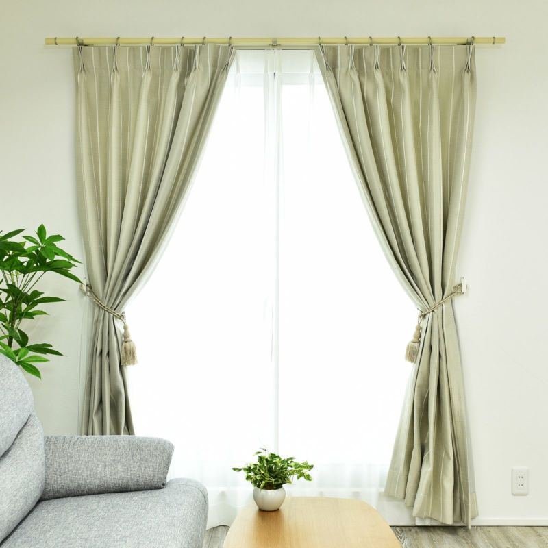 スルッとした手触りのいい生地に細いストライプ模様が入った高級感のある遮光2級カーテンです。シンプルやナチュラル、モダンなインテリアにもマッチします。リビング・ダイニング、寝室や書斎にも使いやすい商品です。また、ウォッシャブルなのでお家でお洗濯が可能です。