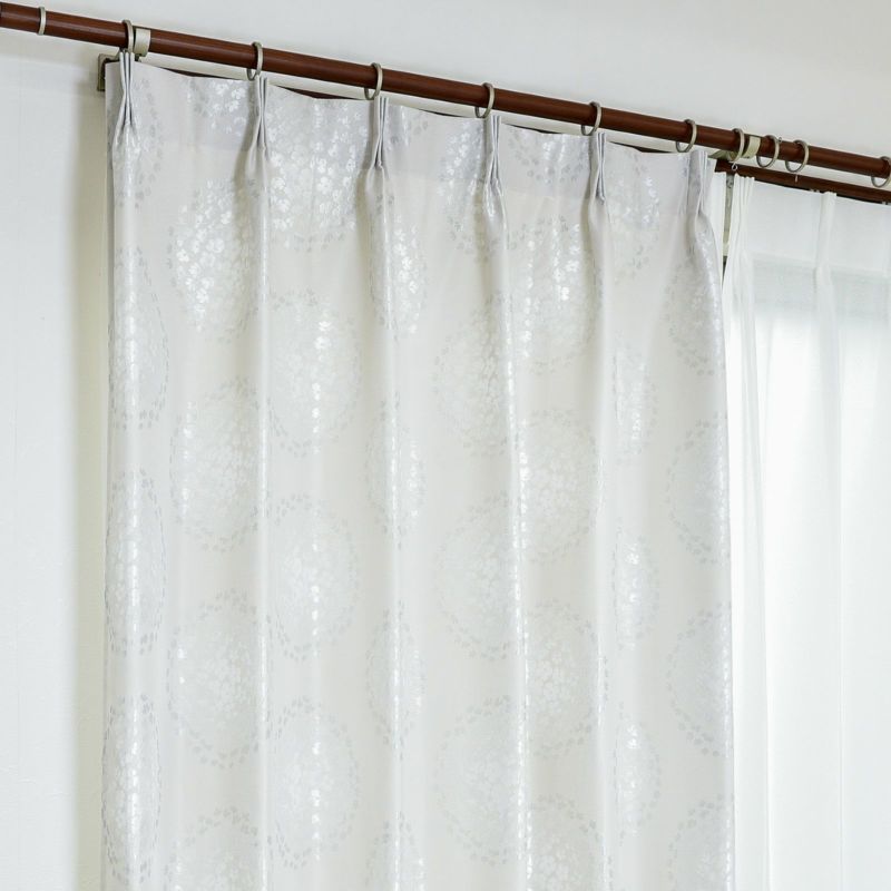 満開の花々を大きな丸い形に描いた華やかなデザインのドレープです。オリジナルであるCocoのスケールを小さくしたデザインです。防炎カーテンの設置が義務付けられているマンション等でも安心してお使いいただけます。また、ウォッシャブルなのでお家でお洗濯が可能です。