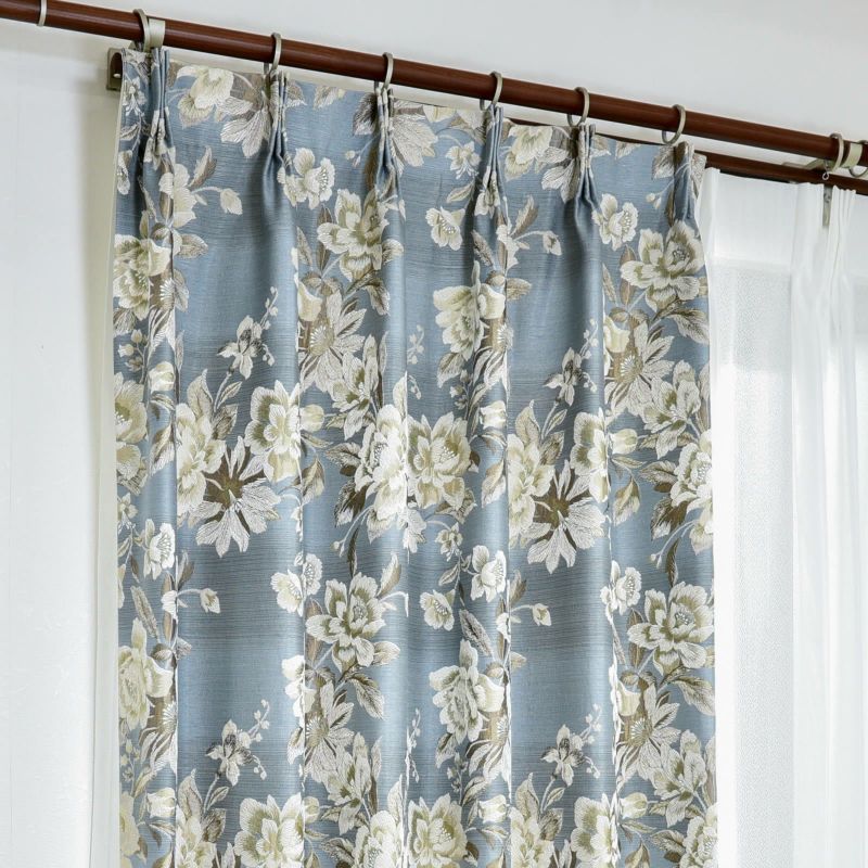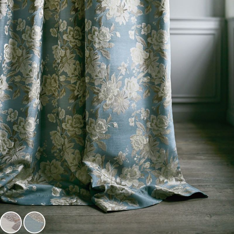 ミラショーン 洗える 防炎 花柄 高級 ドレープ カーテン 0000008091