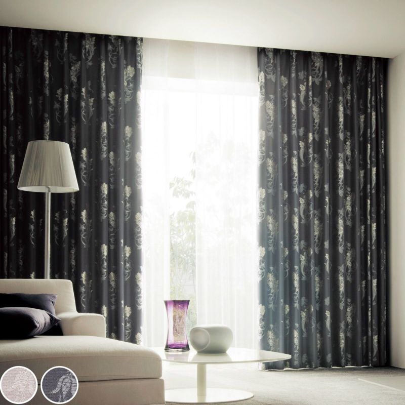 タテ糸にフィラメントの双糸を使い品の良い光沢感を持たせた、エレガントなジャガード織です。ヨコ糸にフィルム糸を織り込み光沢感に変化を持たせています。防炎カーテンの設置が義務付けられているマンション等でも安心してお使いいただけます。また、ウォッシャブルなのでお家でお洗濯が可能です。