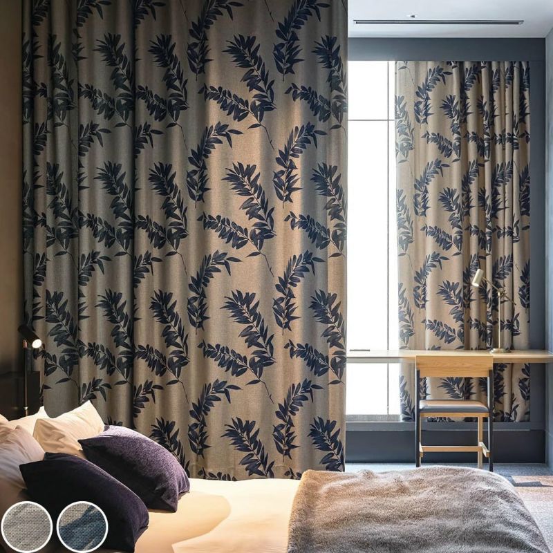 ナチュラルな表情を持つ遮光カーテンに、水彩で描いたヤマハゼをプリントしています。防炎カーテンの設置が義務付けられているマンション等でも安心してお使いいただけます。また、ウォッシャブルなのでお家でお洗濯が可能です。