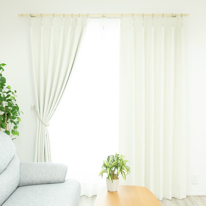 ※オプションでプリーツ加工を選択できる商品については、カーテンのウェーブを美しく保ち、生地の収まりを良くするため、プリーツ加工をおすすめしています。加工なしの場合、写真と異なる見え方や裾の広がりが生じることがあります。