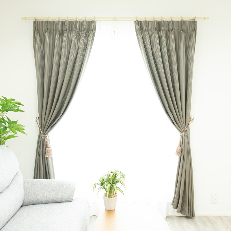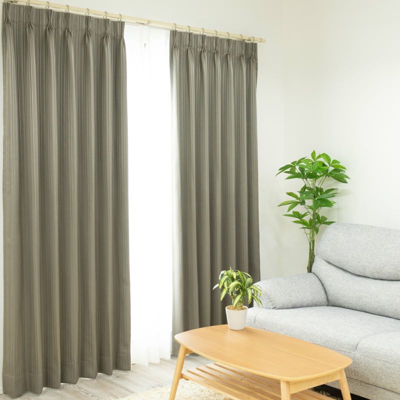 ※オプションでプリーツ加工を選択できる商品については、カーテンのウェーブを美しく保ち、生地の収まりを良くするため、プリーツ加工をおすすめしています。加工なしの場合、写真と異なる見え方や裾の広がりが生じることがあります。