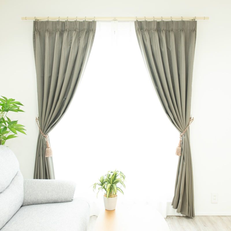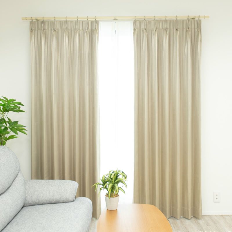 光沢のあるストライプ柄が特徴の遮光2級カーテンです。上品な光沢感でお部屋をすっきりとスタイリッシュな印象に仕上げてくれます。ウォッシャブルなのでお家でお洗濯が可能です。