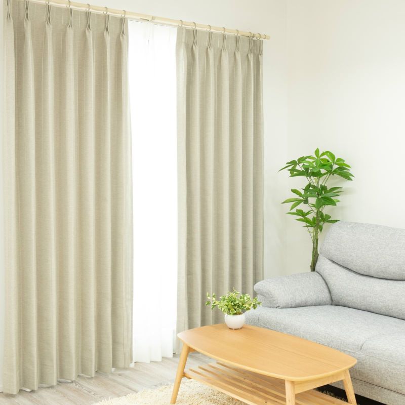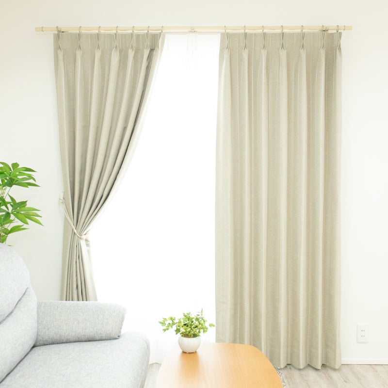 ※オプションでプリーツ加工を選択できる商品については、カーテンのウェーブを美しく保ち、生地の収まりを良くするため、プリーツ加工をおすすめしています。加工なしの場合、写真と異なる見え方や裾の広がりが生じることがあります。