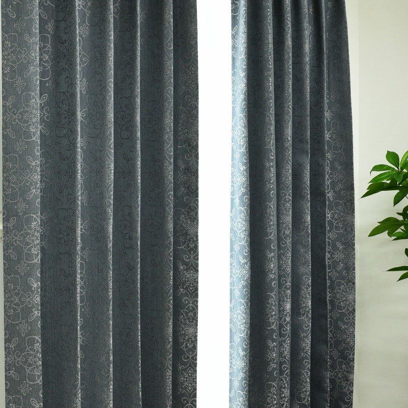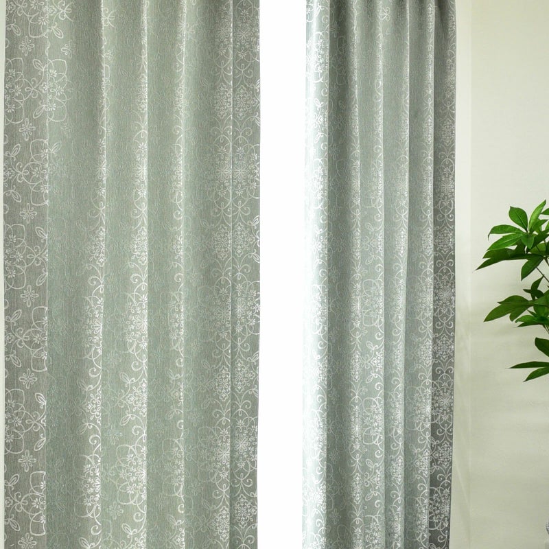 花模様のダマスク柄がエレガントな雰囲気をまとっている上品なドレープカーテンです。光沢のあるシルバーの糸が美しく、お部屋をラグジュアリーな空間に仕上げてくれます。ウォッシャブルなのでお家でお洗濯が可能です。