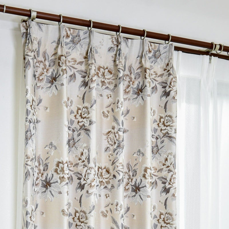 ミラショーン 洗える 防炎 花柄 高級 ドレープ カーテン 0000008091
