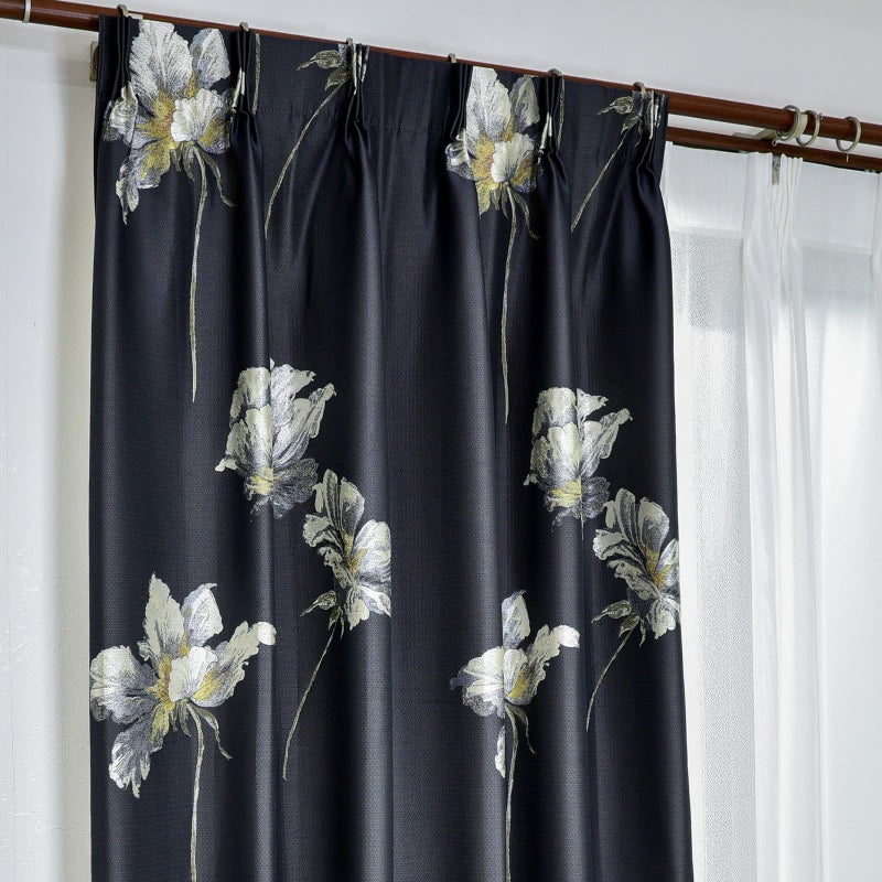 ミラショーン 洗える 防炎 花柄 高級 ドレープ カーテン 0000008114