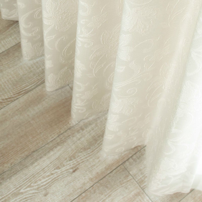 繊細な花柄模様がジャガード織で表現された高級感のある遮光カーテンです。華やかでクラシカルなデザインなので、モダンやボタニカル、ラグジュアリーなど様々なスタイルとマッチする人気の高いカーテンです。ウォッシャブルなのでお家でお洗濯が可能です。