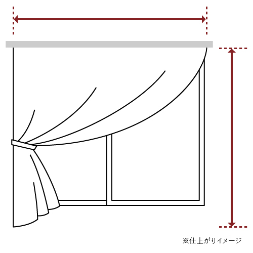 ※仕上がり幅サイズはカーテンの両端フック間の長さです。実際のカーテンの幅は両端耳部分の長さ(左右約2.5cmずつ)が加わります。