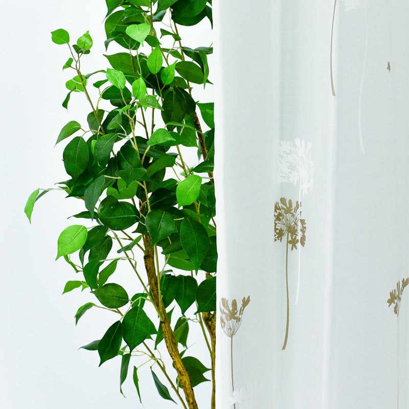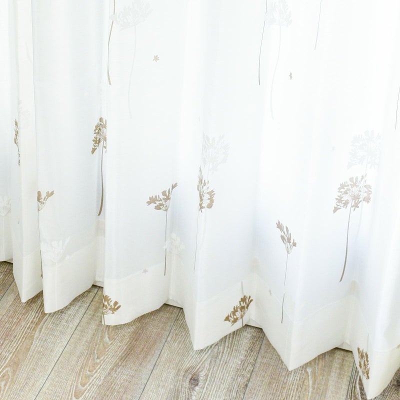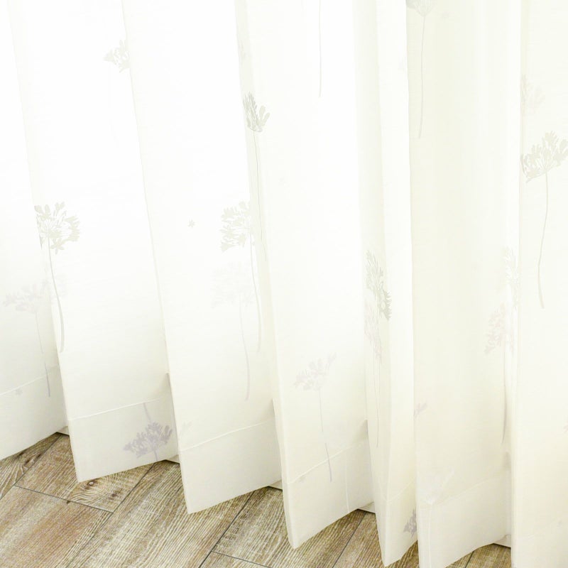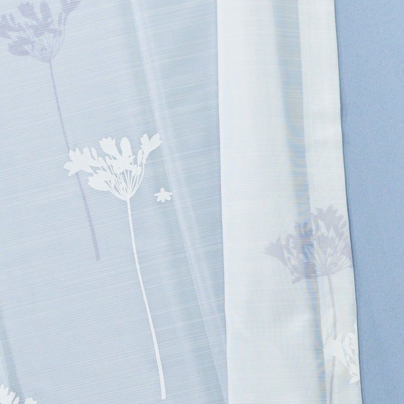 杢感とフラワーモチーフのプリントが魅力のレースカーテンです。夏の強い紫外線からお肌を守るUVカット機能付きです。さらに遮熱機能があり、夏は外からの暑い熱を防ぎ、冬は室内の温かい暖気を逃がしにくく室内を快適にしてくれます。また、ウォッシャブルなのでお家でお洗濯が可能です。
