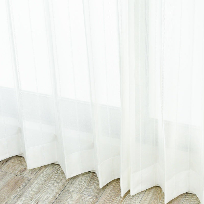 縦ラインのストライプ柄が特徴のシンプルなレースカーテンです。ミラー加工が施されているため、日中の外からの視線を遮る目隠し機能があります。ウォッシャブルなのでお家でお洗濯が可能です。