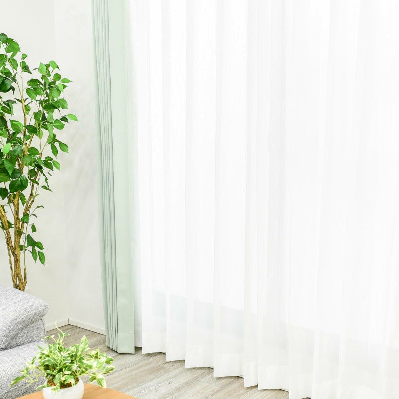 ※オプションでプリーツ加工を選択できる商品については、カーテンのウェーブを美しく保ち、生地の収まりを良くするため、プリーツ加工をおすすめしています。加工なしの場合、写真と異なる見え方や裾の広がりが生じることがあります。