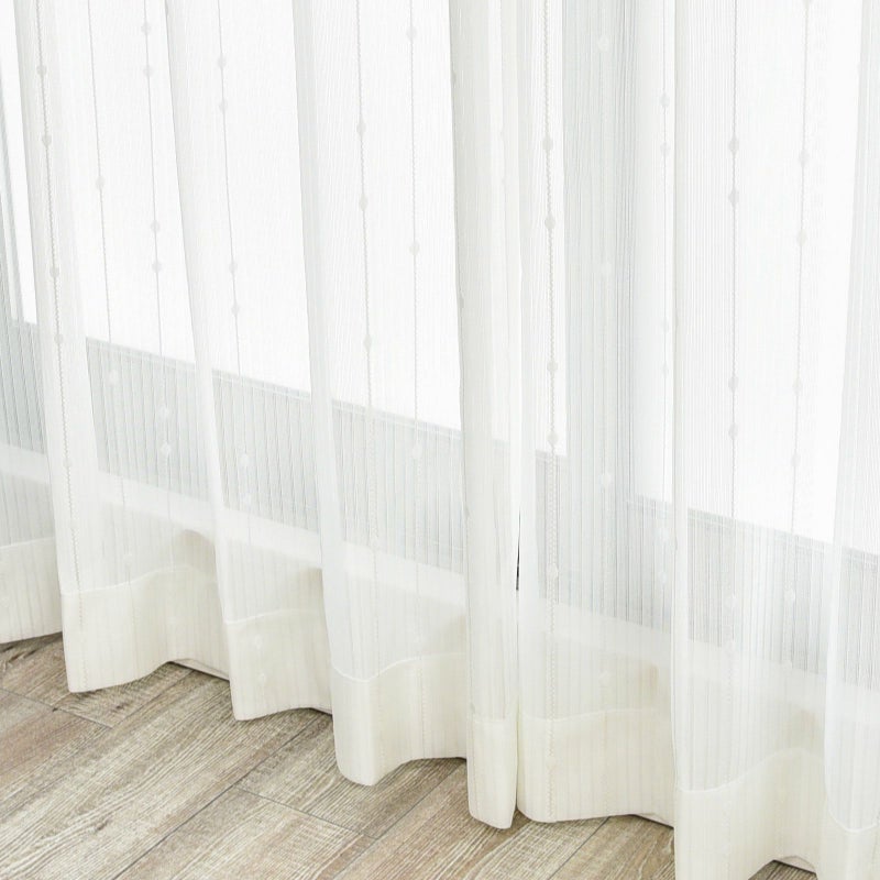水玉模様とストライプが組み合わさったポップで可愛らしいデザインのミラーレースカーテンです。女性の一人暮らしや二人暮らし、子供部屋などにもおすすめのレースです。また、ミラー加工が施されているため、日中の外からの視線を遮る目隠し機能があります。ウォッシャブルなのでお家でお洗濯が可能です。