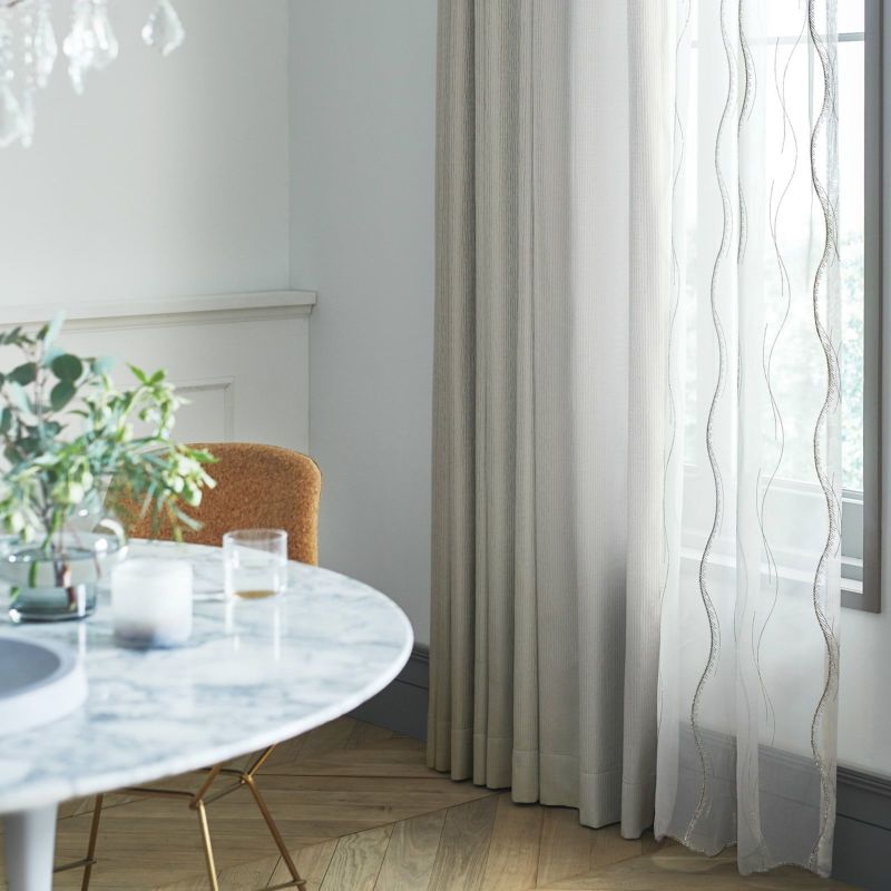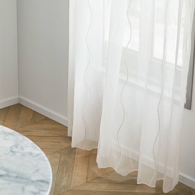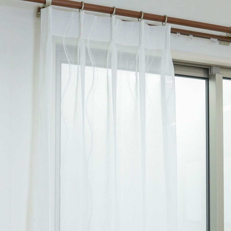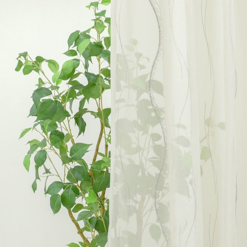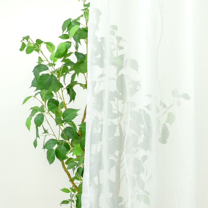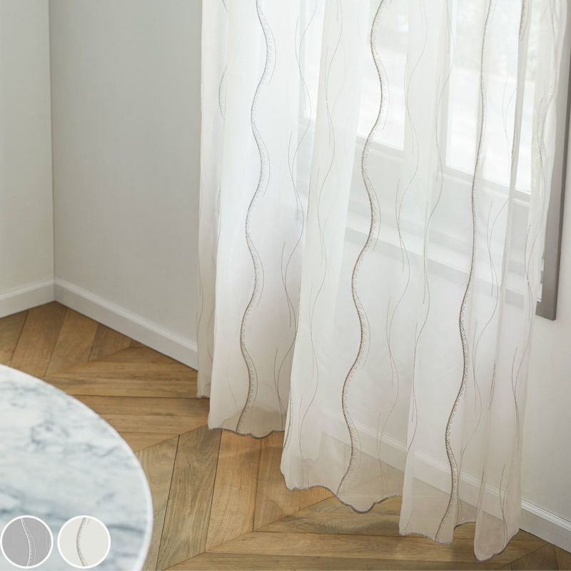 モダンでおおらかなライン柄が丁寧に刺繍されています。少しタッチや太さを変えたデザイン性は、窓辺にリズムを生み出し高級感を演出します。遮熱効果でお部屋の冷暖房効率もアップ。ウォッシャブルなのでお家でお洗濯が可能です。