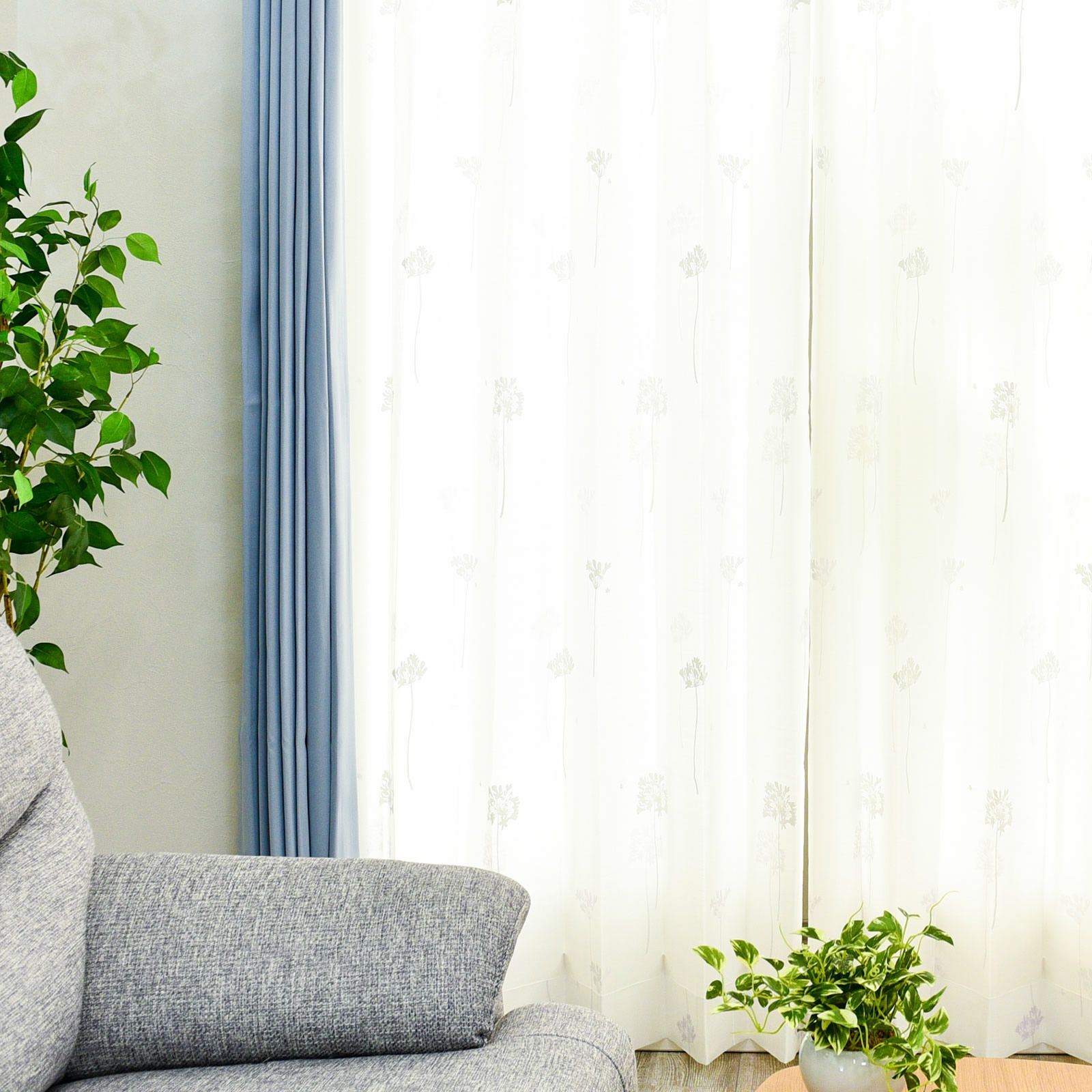 杢感とフラワーモチーフのプリントが魅力のレースカーテンです。夏の強い紫外線からお肌を守るUVカット機能付きです。さらに遮熱機能があり、夏は外からの暑い熱を防ぎ、冬は室内の温かい暖気を逃がしにくく室内を快適にしてくれます。また、ウォッシャブルなのでお家でお洗濯が可能です。