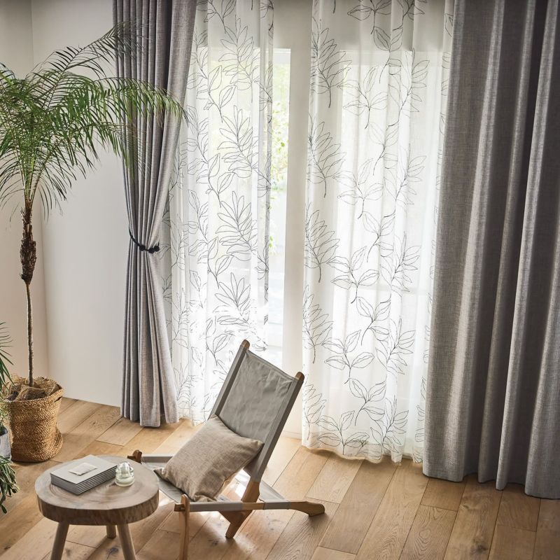 ※オプションでプリーツ加工を選択できる商品については、カーテンのウェーブを美しく保ち、生地の収まりを良くするため、プリーツ加工をおすすめしています。加工なしの場合、写真と異なる見え方や裾の広がりが生じることがあります。