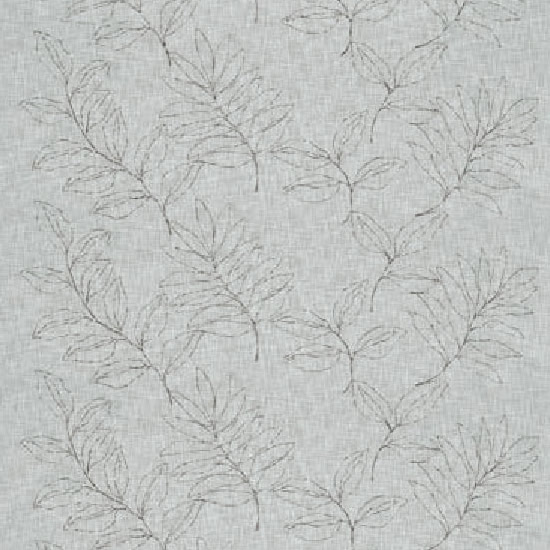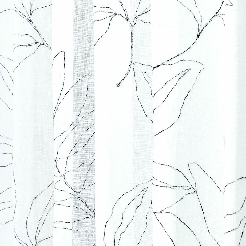 白と黒の撚り糸でリーフを描いたラスティックな雰囲気の刺繍です。コード刺繍(意匠糸を生地表面に這わせ、別糸で刺し止める刺繍技法)を施しています。ウォッシャブルなのでお家でお洗濯が可能です。