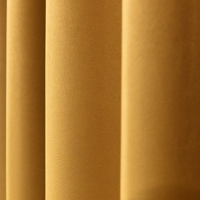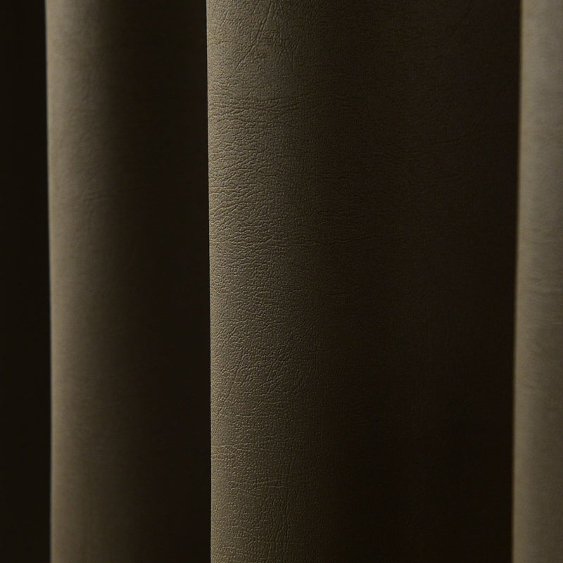 レザー調のエンボス加工を施した無地の遮光1級カーテンです。遮光1級は遮光の中でも遮光性が最も高いカーテンです。また、防炎性があるので、カーテンの使用が必要な建物でも安心してお使いいただけます。ウォッシャブルなのでお家でお洗濯が可能です。